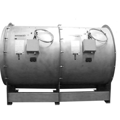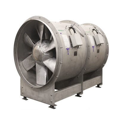 The Dual Smoke Fan Sets ZerAx® HT smoke exhaust fans are pre-assembled units with two certified ZerAx AZN smoke fans in series for horizontal mounting. The high performance, dual smoke fan sets are designed for operation in duty-standby or dual-duty configuration for (smoke) ventilation operation in all types of buildings. The units are tested and approved for smoke exhaust operation in combination with frequency converters to allow for the systems to be accurately balanced during commissioning.
